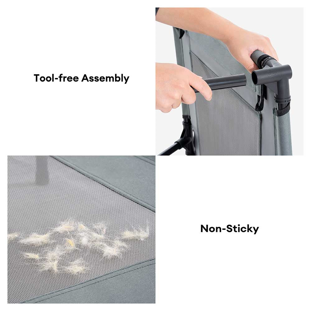 - Sturdy & Secure Build: With a sturdy metal frame and reinforced mesh, this wobble-free bed supports pets up to 120 lbs. Non-slip foot grips provide stability on any surface, ensuring a secure and comfortable resting spot for dogs of all sizes.